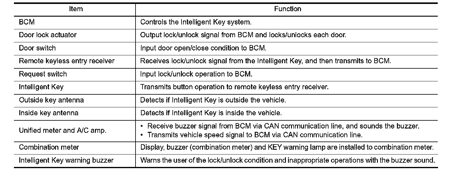 INTELLIGENT KEY SYSTEM : Component Description