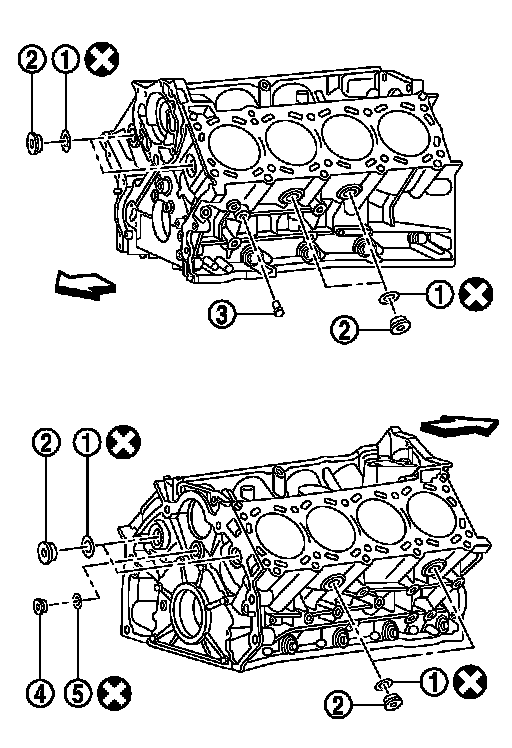 7.Drain engine coolant by removing water drain plug (3) from both sides of the cylinder block as shown in the figure.