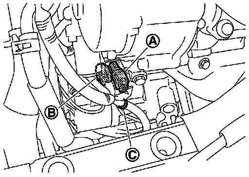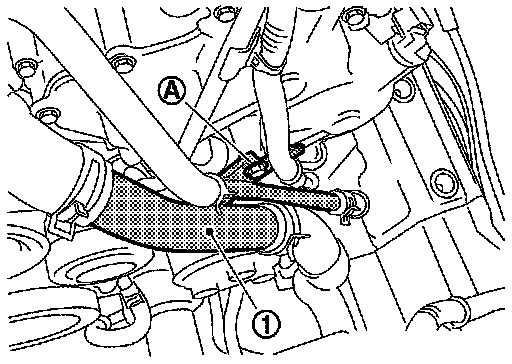 4.Remove mounting nut (A), and then disconnect high-pressure flexible hose (1).