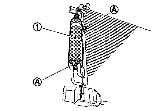 - Check that liquid tank bracket is securely installed at protrusion of condenser. (Check that liquid tank bracket does not move to a position below center of liquid tank.)