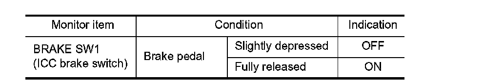 1. CHECK ICC BRAKE SWITCH FUNCTION