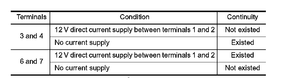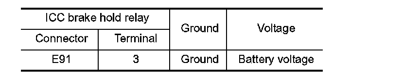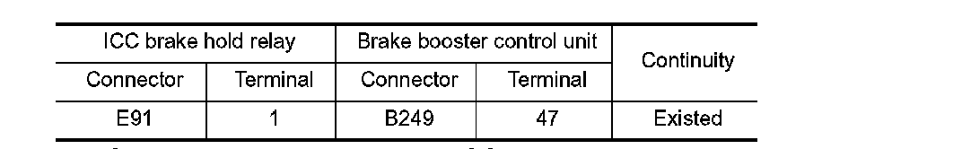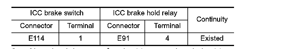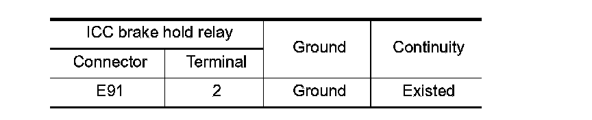 3.Check the continuity between ICC brake hold relay terminals under the following conditions.
