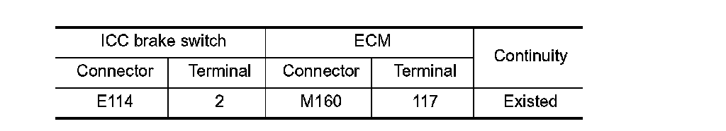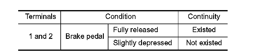 2.Check the continuity between ICC brake switch terminals under the following conditions.