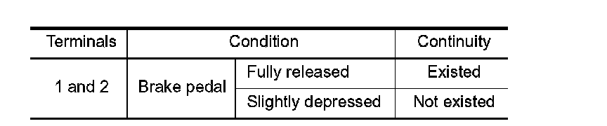 3.Check the continuity between ICC brake switch terminals under the following conditions.