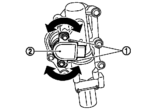 8.Turn the VVEL control shaft position sensor (2) clockwise and counterclockwise while monitoring the output voltage between the VVEL control module terminals with a tester and adjust the output voltage to be within the standard value.
