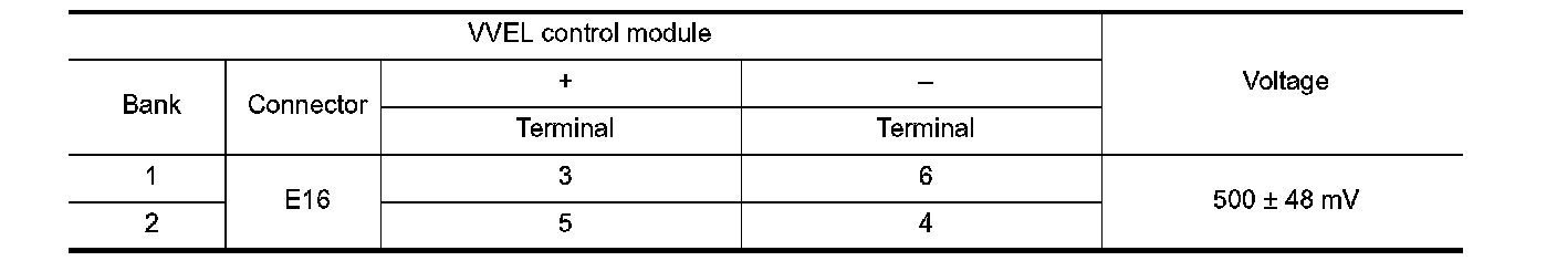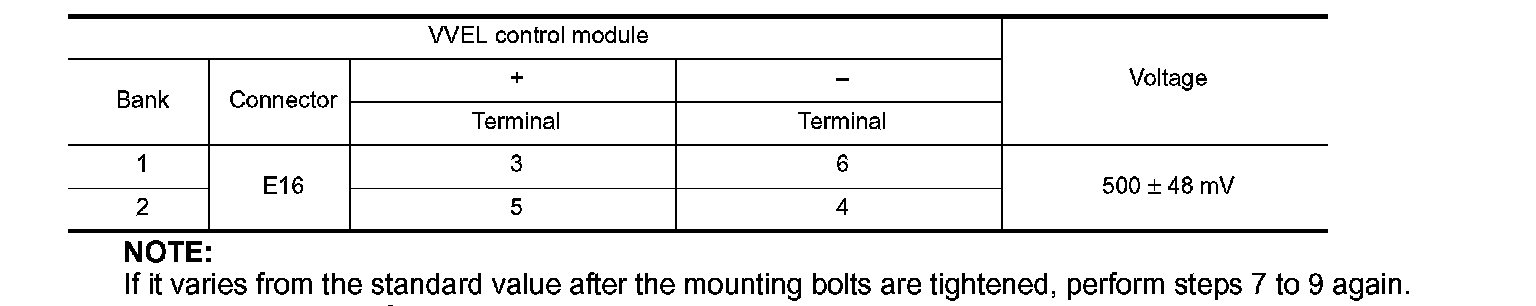 10.Reconfirm that the output voltage of VVEL control shaft position sensor is within the standard value.