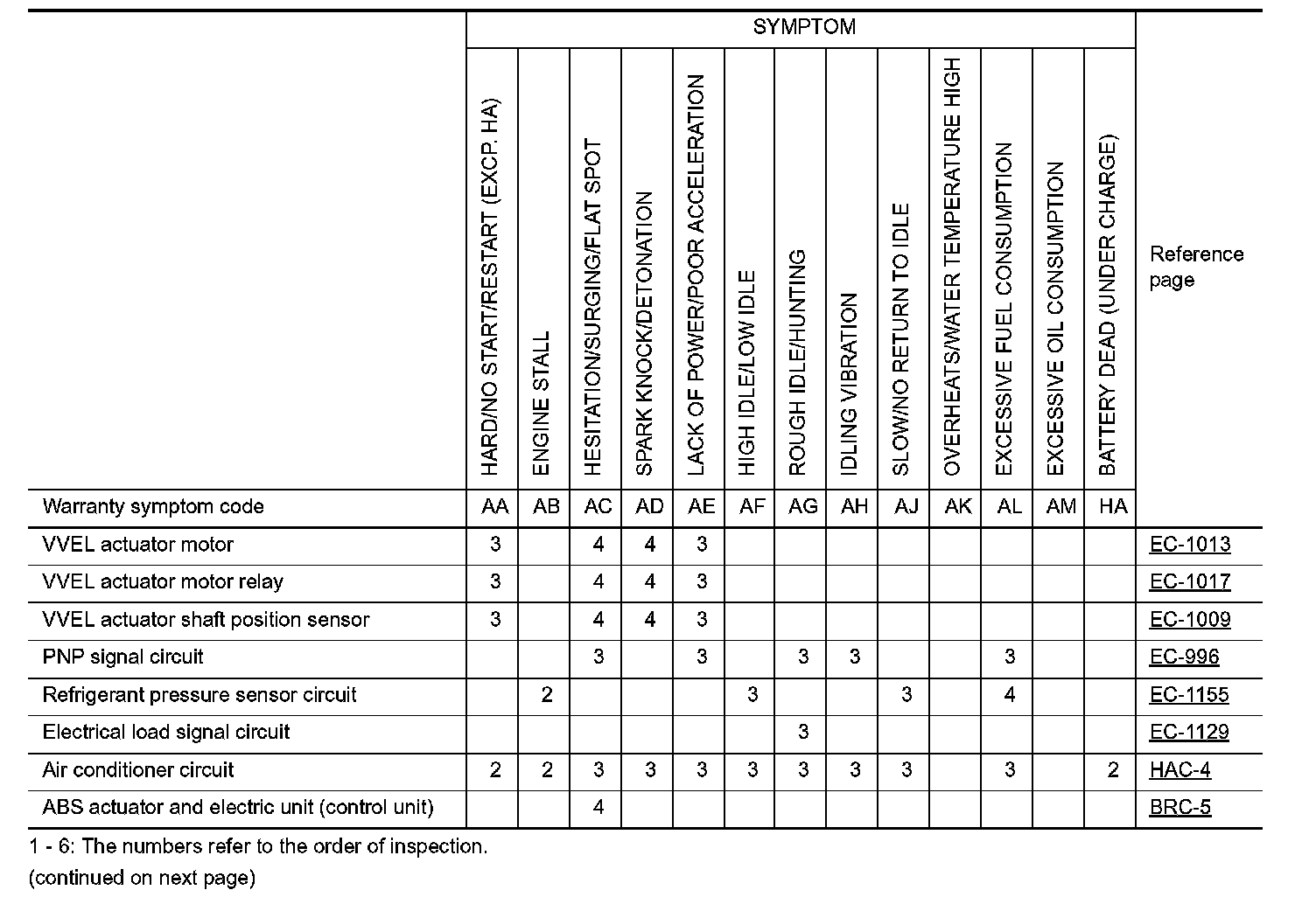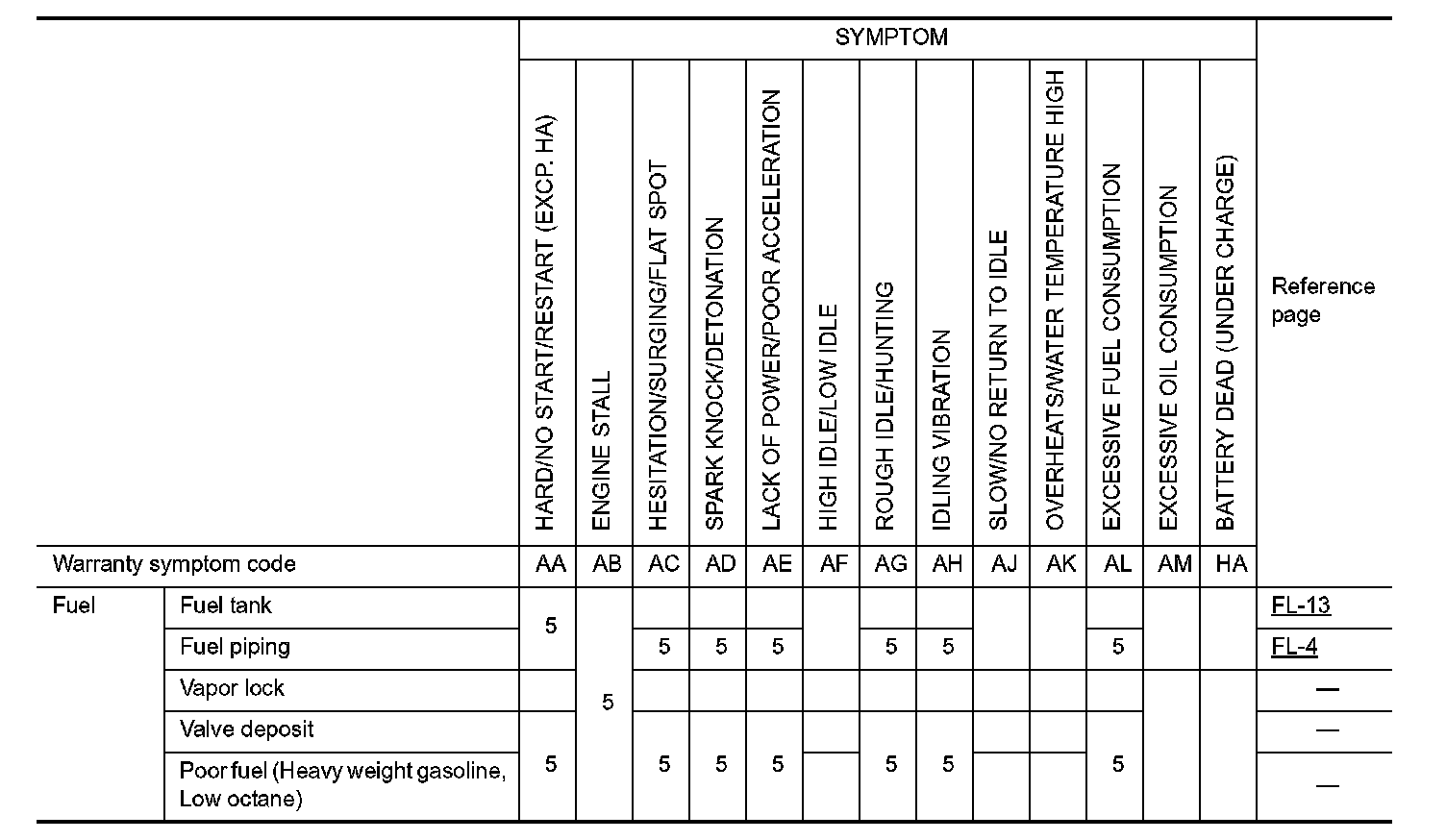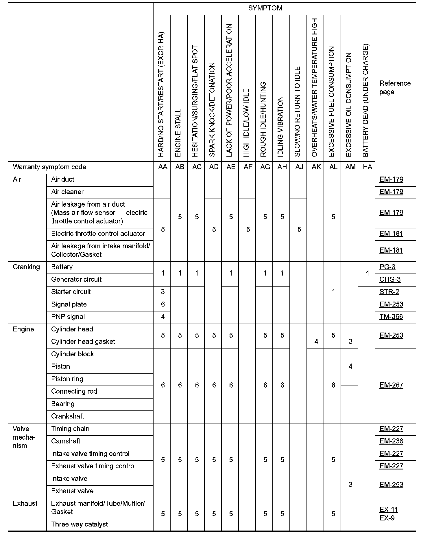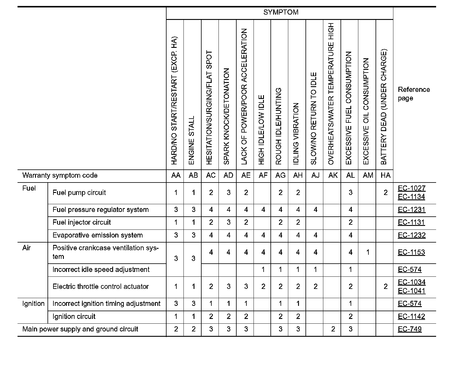 ENGINE CONTROL SYSTEM SYMPTOMS