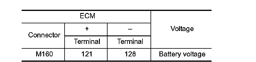 2.Check the voltage between ECM harness connector terminals under the following conditions.