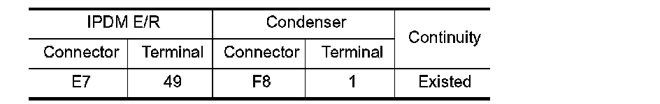 3.Check the continuity between IPDM E/R harness connector and condenser harness connector.