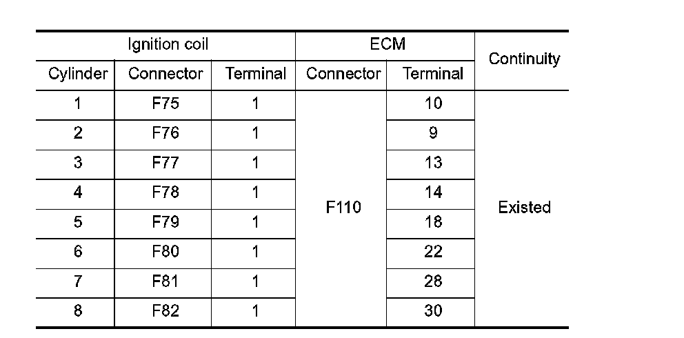 2.Check the continuity between ignition coil harness connector and ECM harness connector.