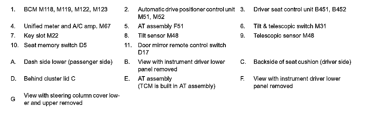 SEAT SYNCHRONIZATION FUNCTION : Component Parts Location