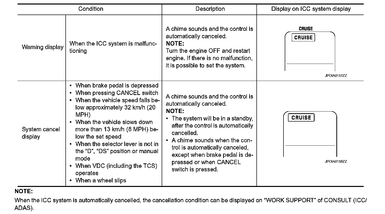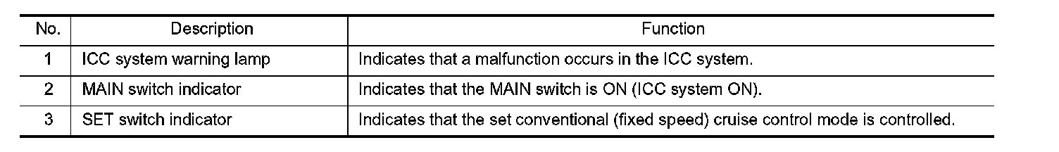 After hold the MAIN switch ON for longer than approximately 1.5 seconds, the ICC system display goes out.