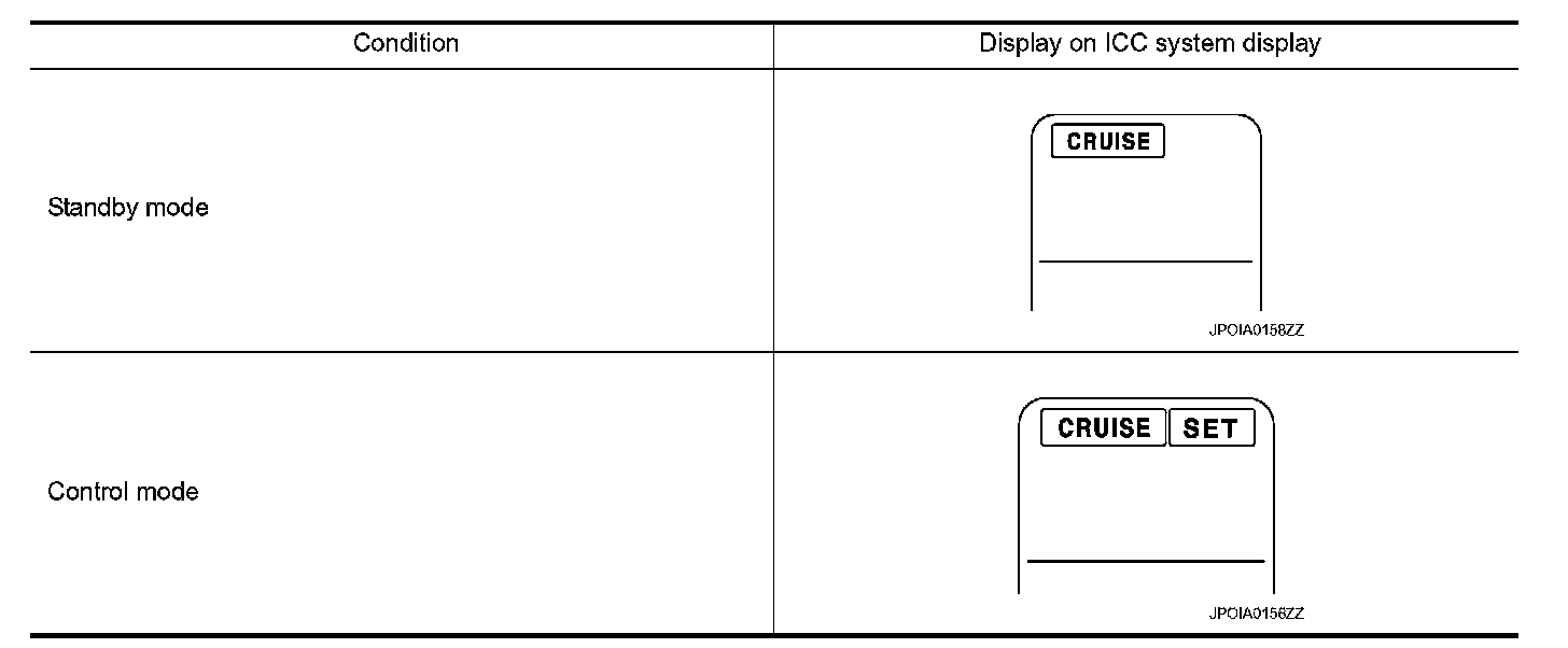 When pushing the MAIN switch ON, the ICC system display and the MAIN switch indicator are displayed on the information display.