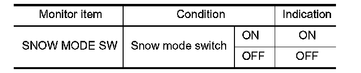 3.Check "SNOW MODE SW" indication under the following conditions.