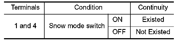 3.Check the continuity between snow mode switch terminals under the following conditions.