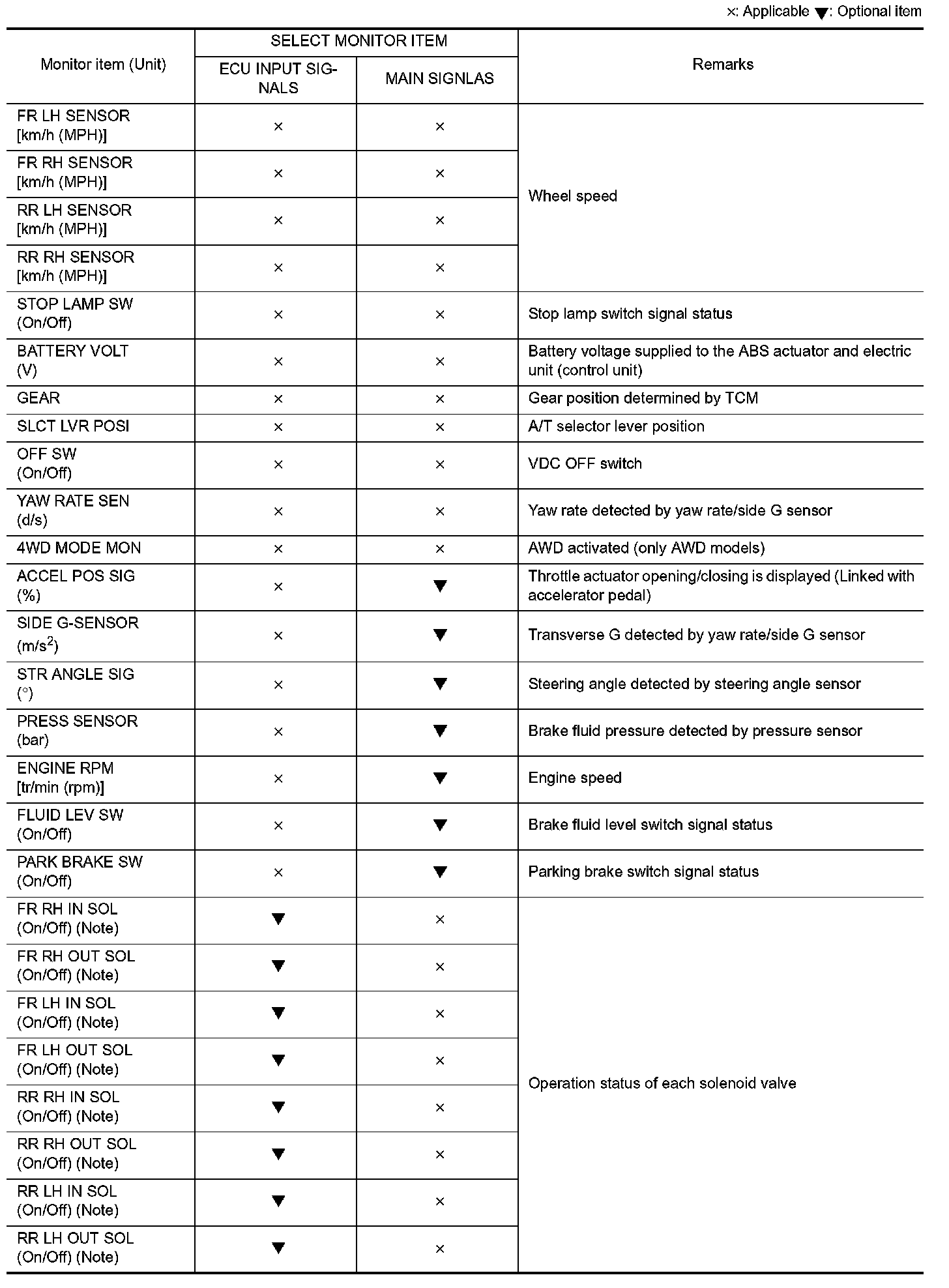 �: Applicable : Optional item