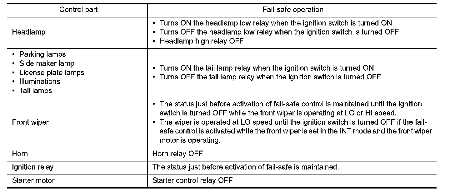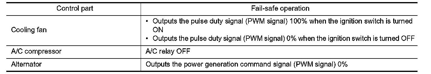 When CAN communication with ECM and BCM is impossible, IPDM E/R performs fail-safe control. After CAN