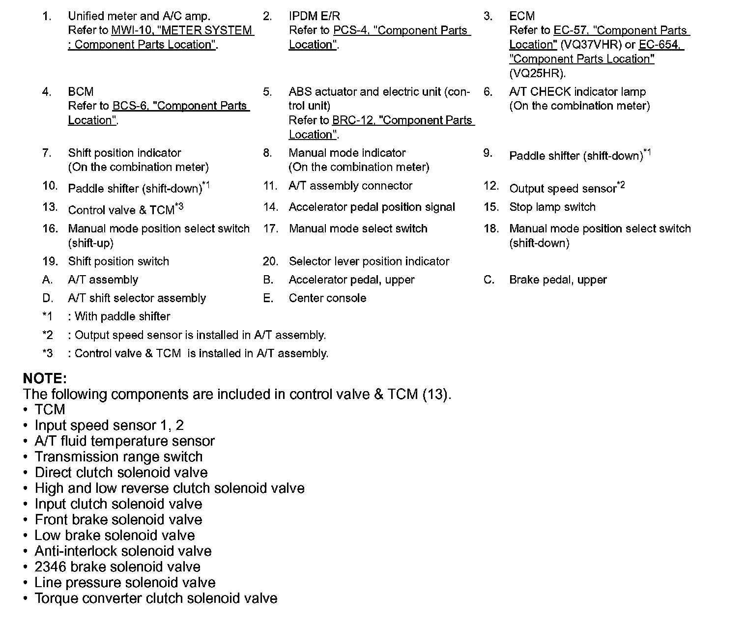 ASC (ADAPTIVE SHIFT CONTROL) : Component Parts Location