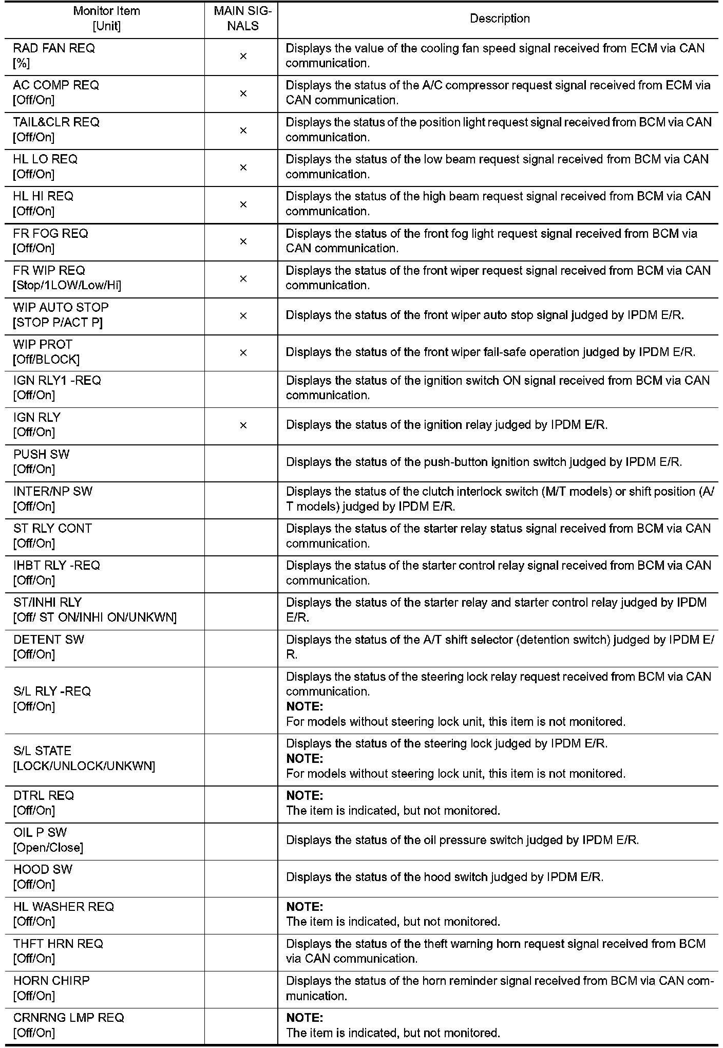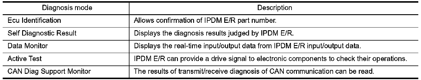 CONSULT-III performs the following functions via CAN communication with IPDM E/R.