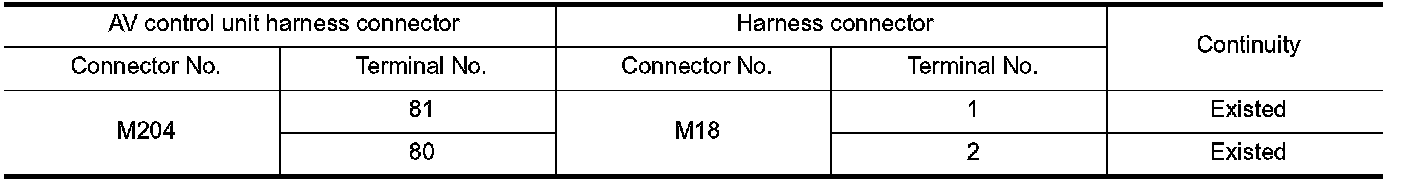 2.Check the continuity between the AV control unit harness connector and the harness connector.