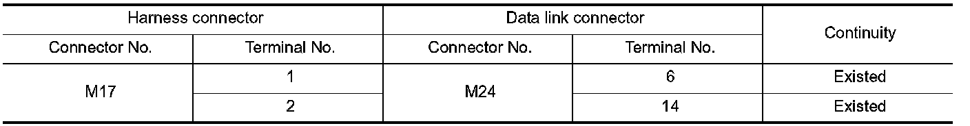 NO- Repair the main line between the harness connector M17 and the data link connector.