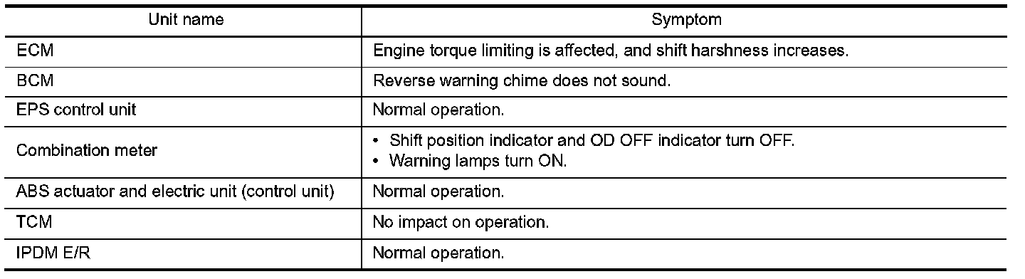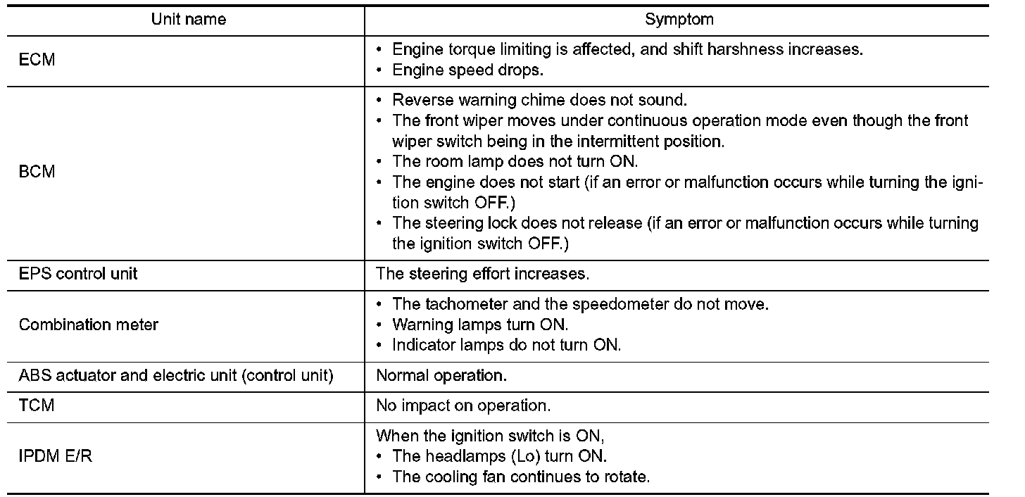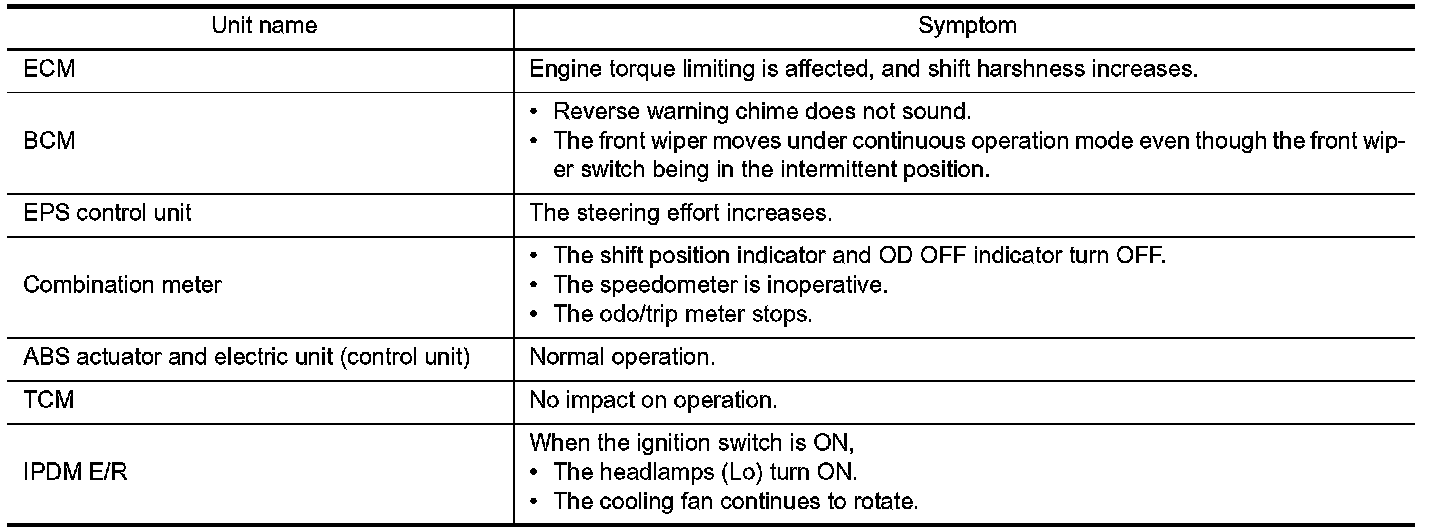 - Each vehicle differs in symptom of each unit under fail-safe mode and CAN communication line wiring.