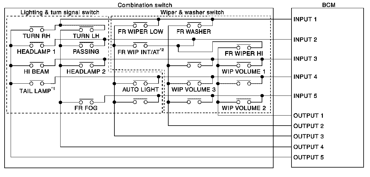 - *2: "FR WIP INT/AT" is FR WIPER INT/AUTO.