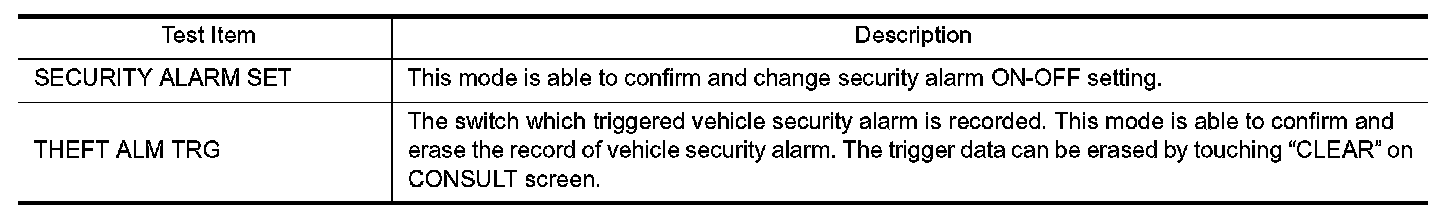 THEFT ALM : CONSULT Function (BCM - THEFT)