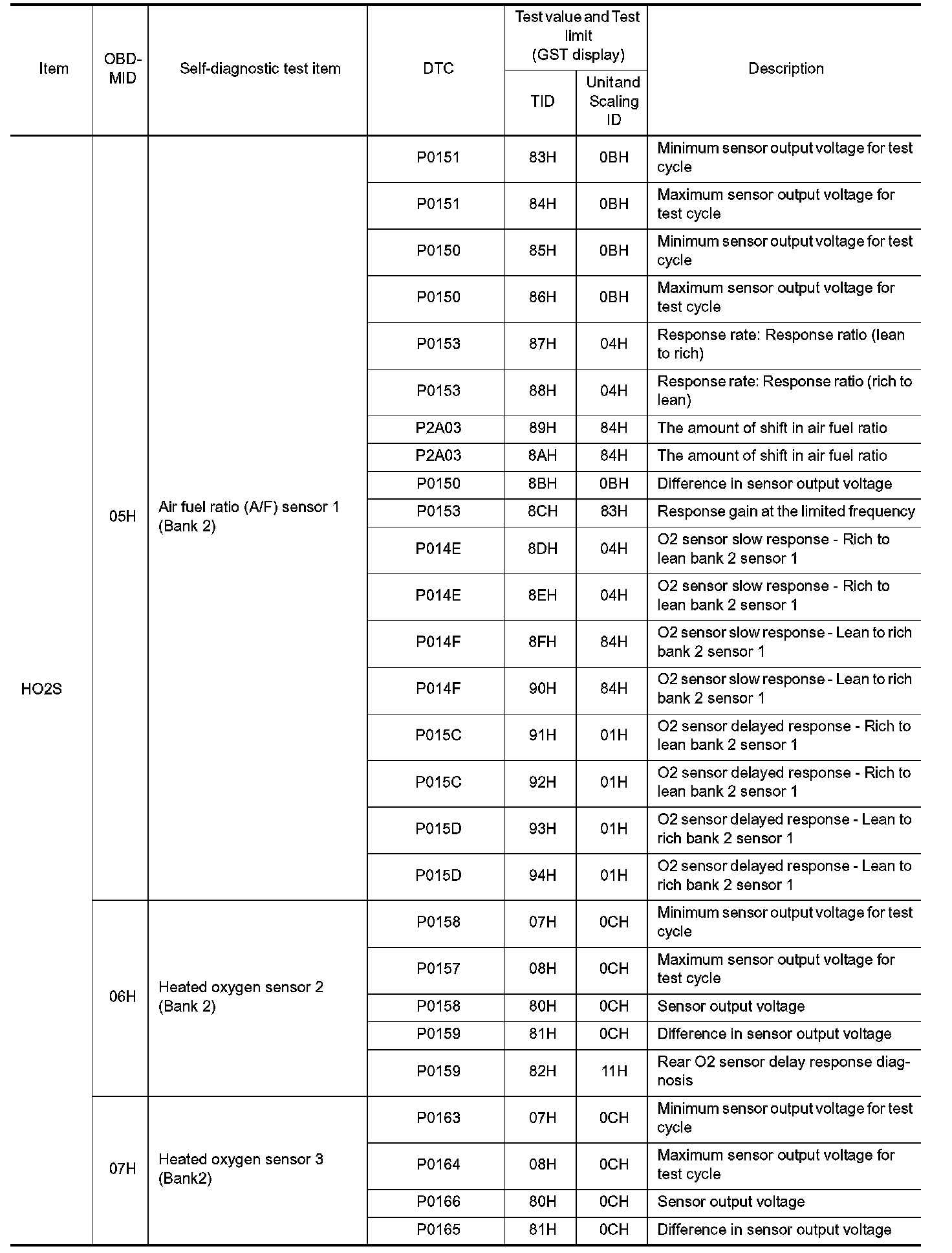 The following is the information specified in Service $06 of SAE J1979/ISO 15031-5.