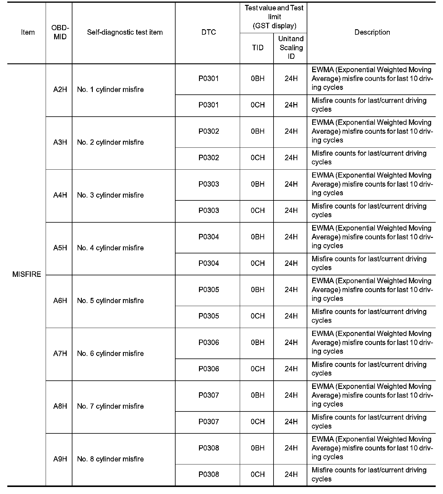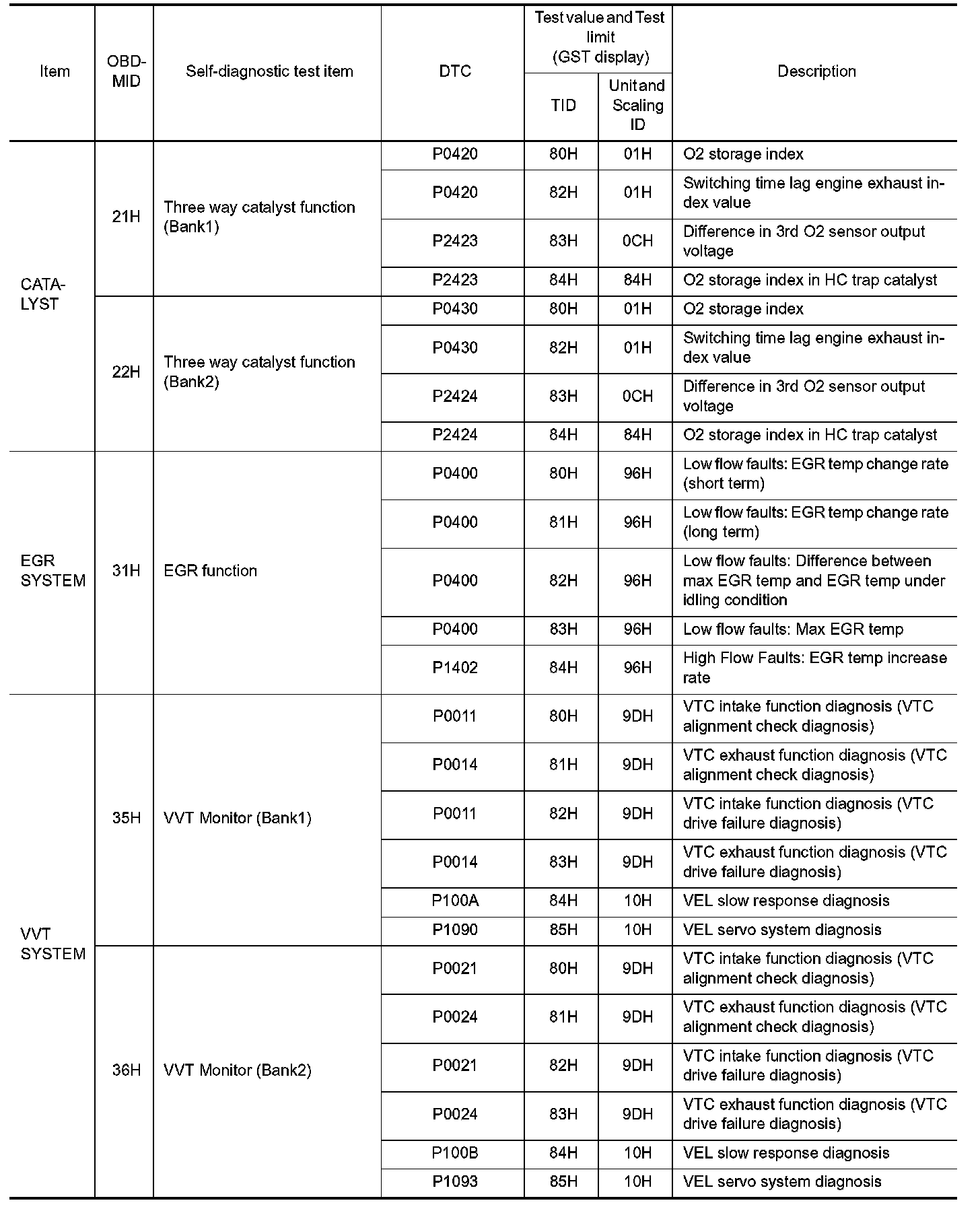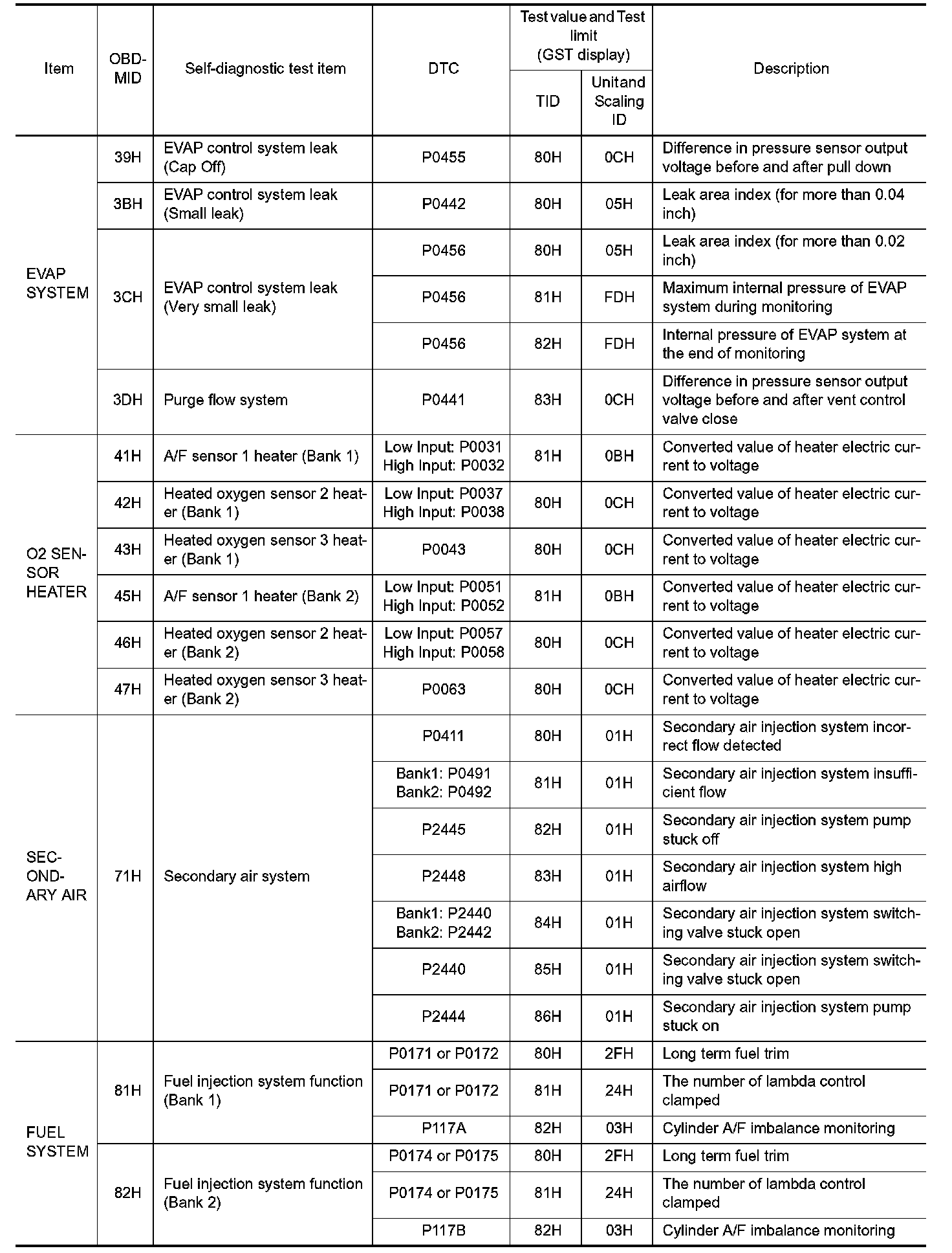These data (test value and test limit) are specified by On Board Monitor ID (OBDMID), Test ID (TID), Unit and