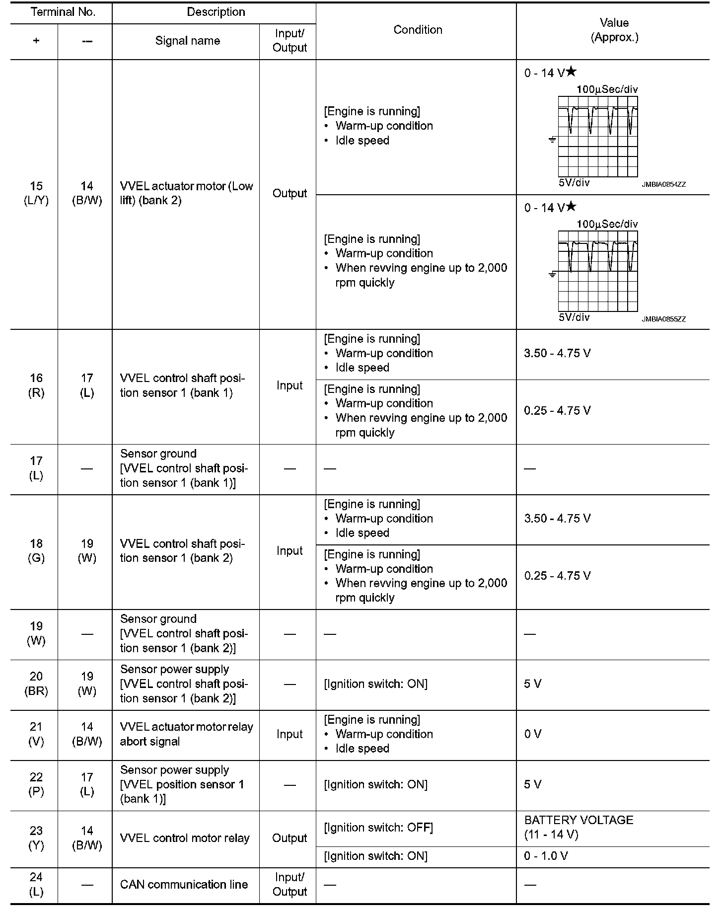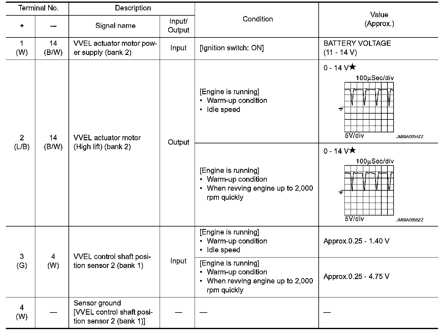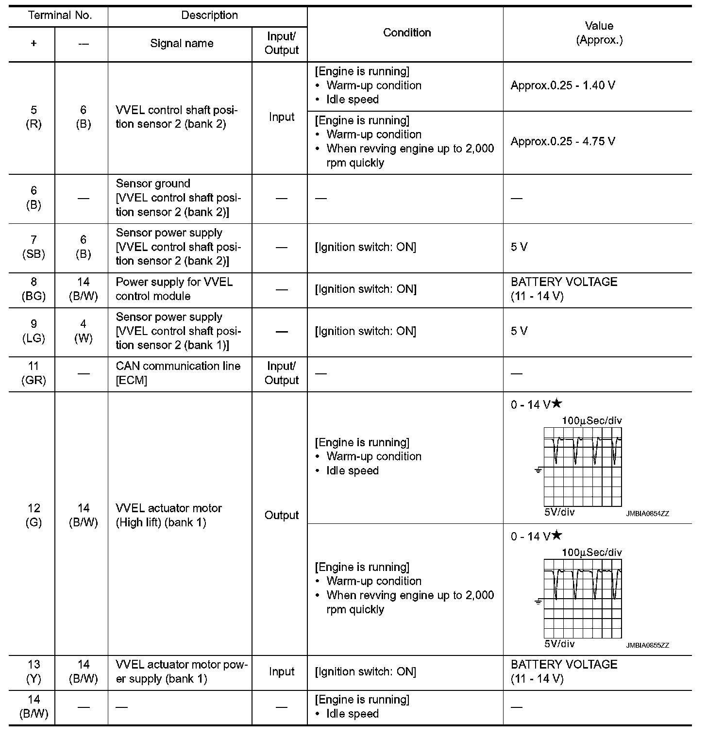 - Specification data are reference values and are measured between each terminal and ground.