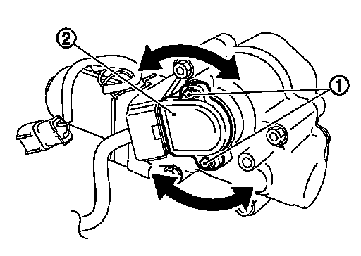 7.Turn the VVEL control shaft position sensor (2) right and left while monitoring the output voltage of "VVEL POSITION SENB-1" or "VVEL POSITION SEN-B2" and adjust the output voltage to be within the standard value.