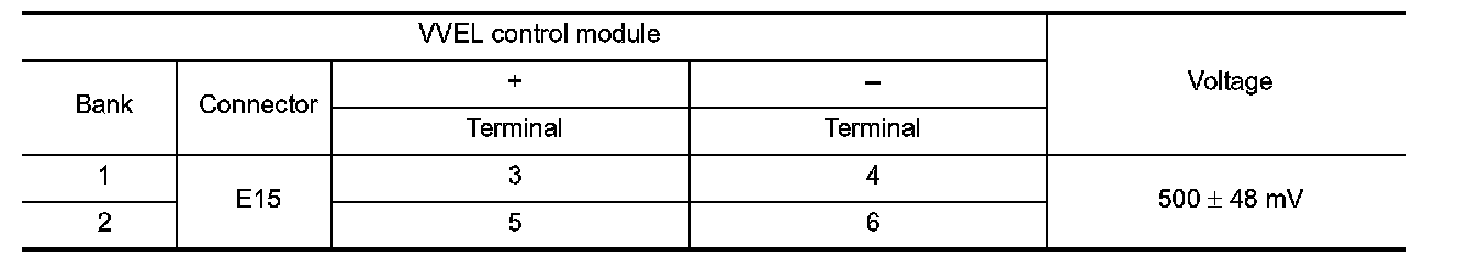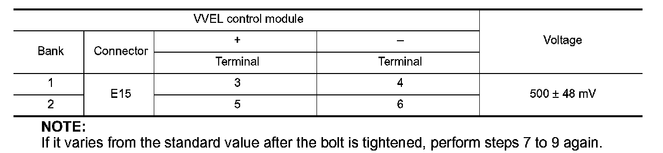 10.Reconfirm that the output voltage of VVEL control shaft position sensor is within the standard value.