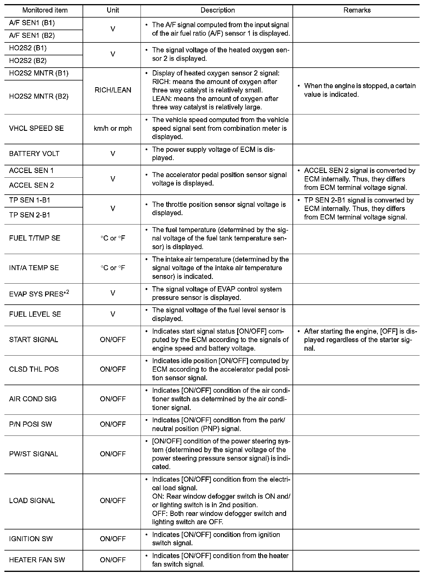 *: The items are the same as those of 1st trip freeze frame data.