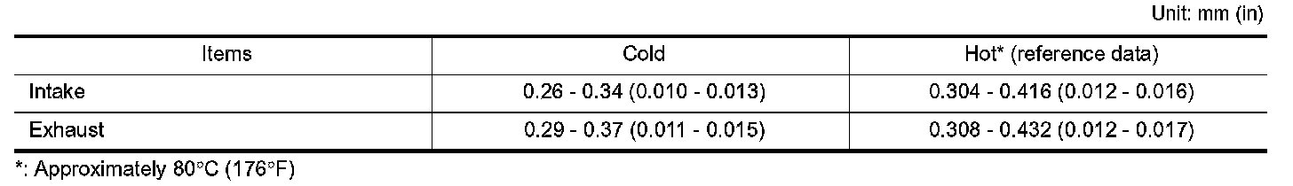 VALVE CLEARANCE