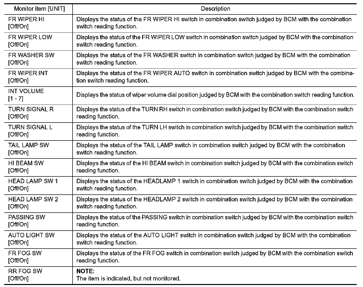 COMB SW : CONSULT Function (BCM - COMB SW)