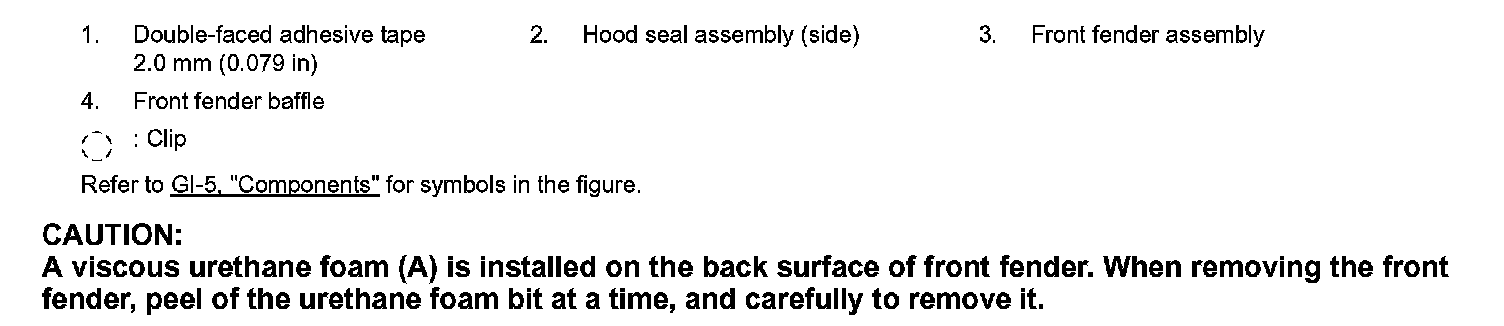 . When removing the front fender, peel of the urethane foam bit at a time, and carefully to remove it.