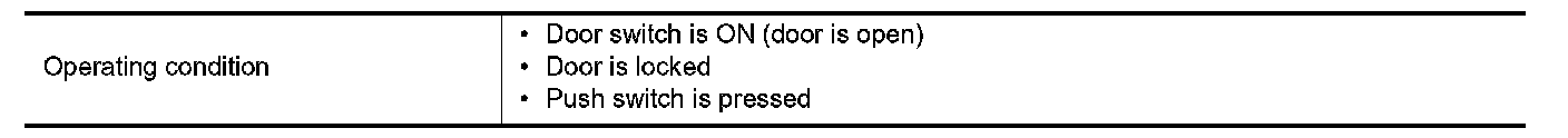 After door is unlocked by door request switch operation and if 60 seconds or more passes without performing the following operation, all doors and fuel filler lid are automatically locked. However, operation check function does not activate.