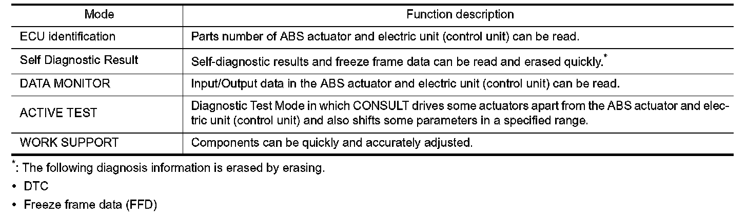 CONSULT can display each diagnostic item using the diagnostic test modes as follows.