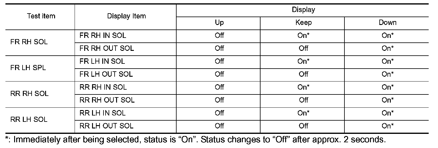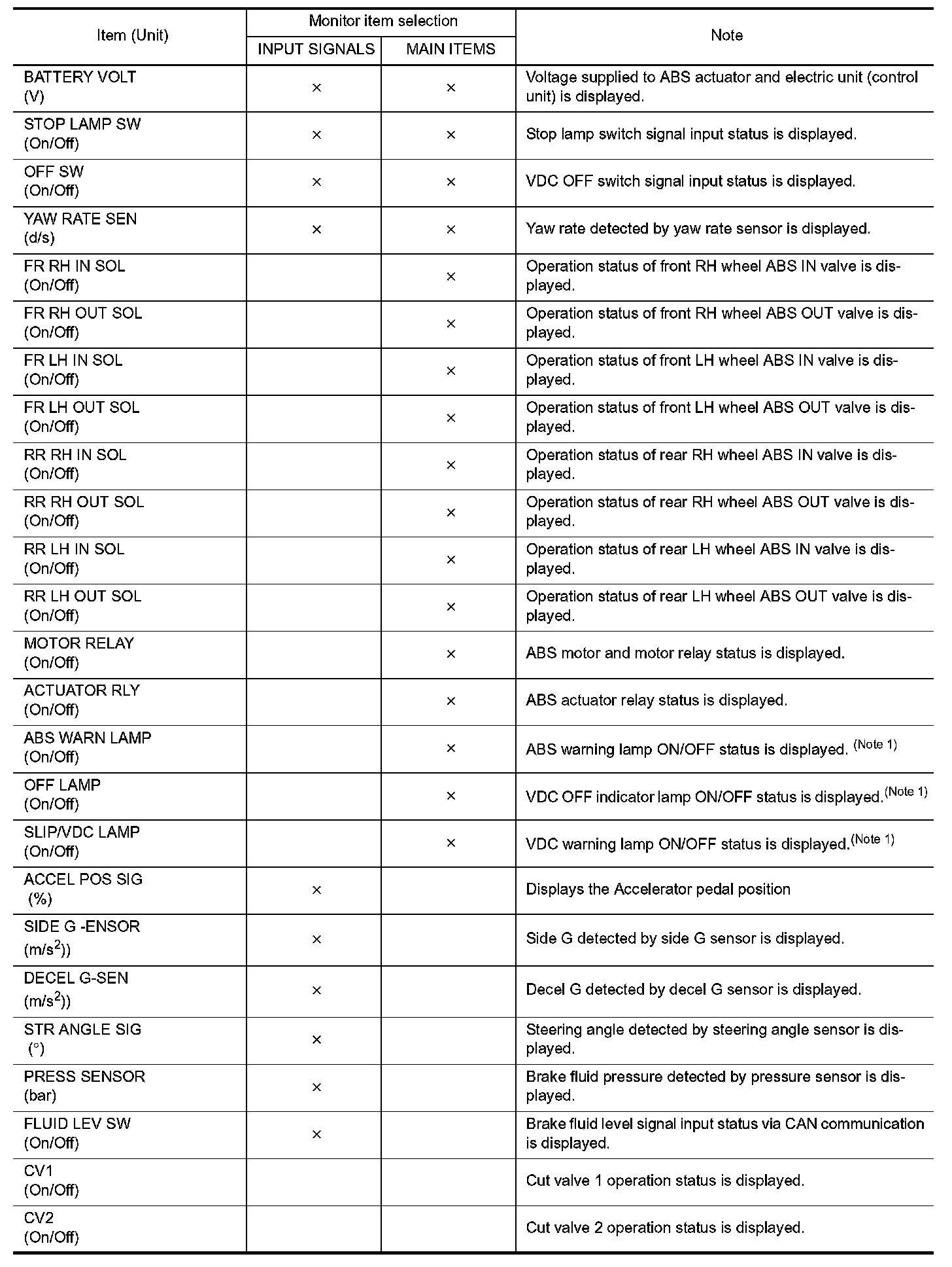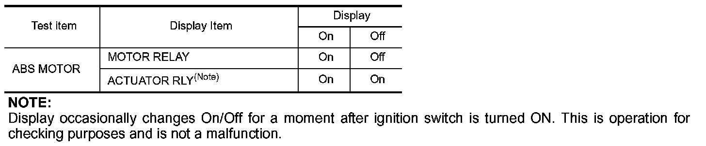 - ABS warning lamp, brake warning lamp and VDC warning lamp may turn ON during active test. This is not a malfunction.