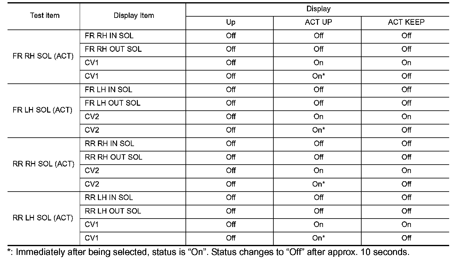 *: Immediately after being selected, status is "On". Status changes to "Off" after approx. 10 seconds.