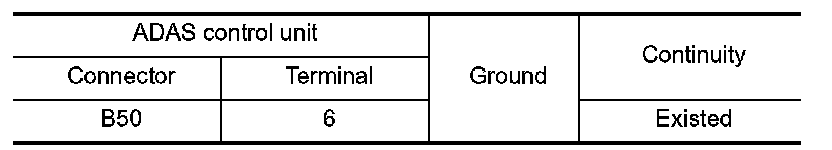 3.Check for continuity between ADAS control unit harness connector and ground.