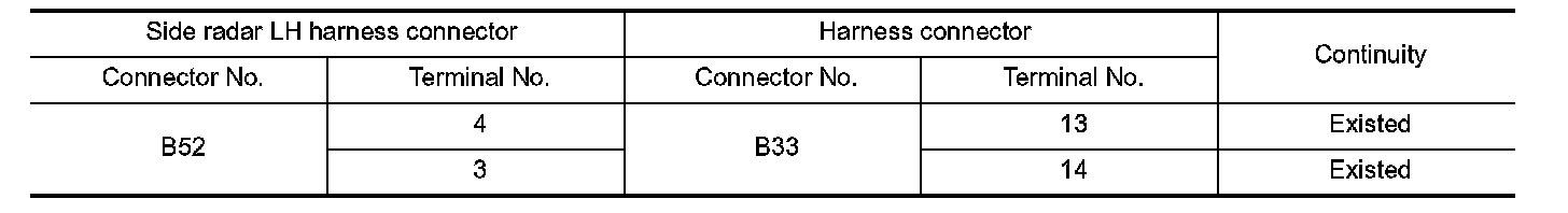 NO- Repair the main line between the side radar LH and the harness connector B33.