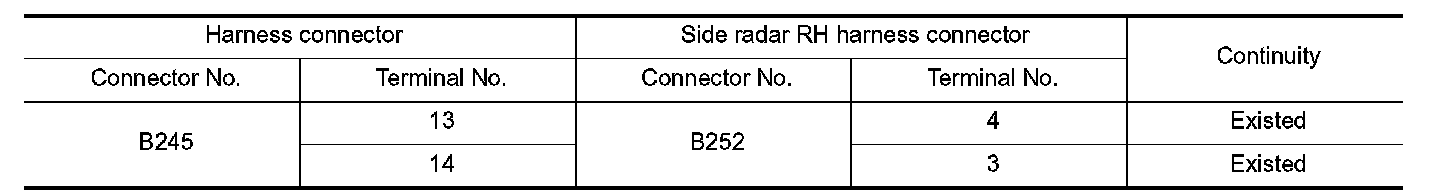 NO- Repair the main line between the harness connector B245 and the side radar RH.