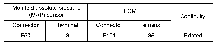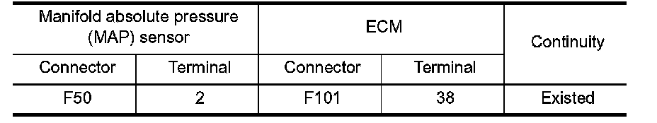 1.Check the continuity between manifold absolute pressure (MAP) sensor harness connector and ECM harness connector.