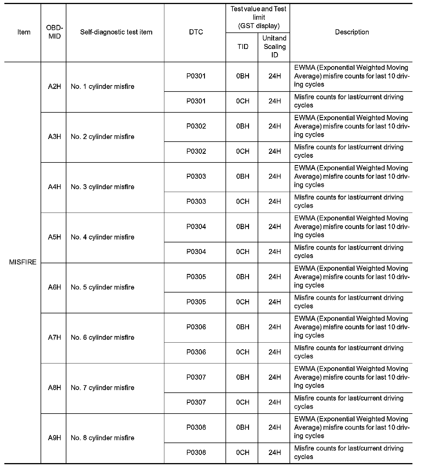 These data (test value and test limit) are specified by On Board Monitor ID (OBDMID), Test ID (TID), Unit and
