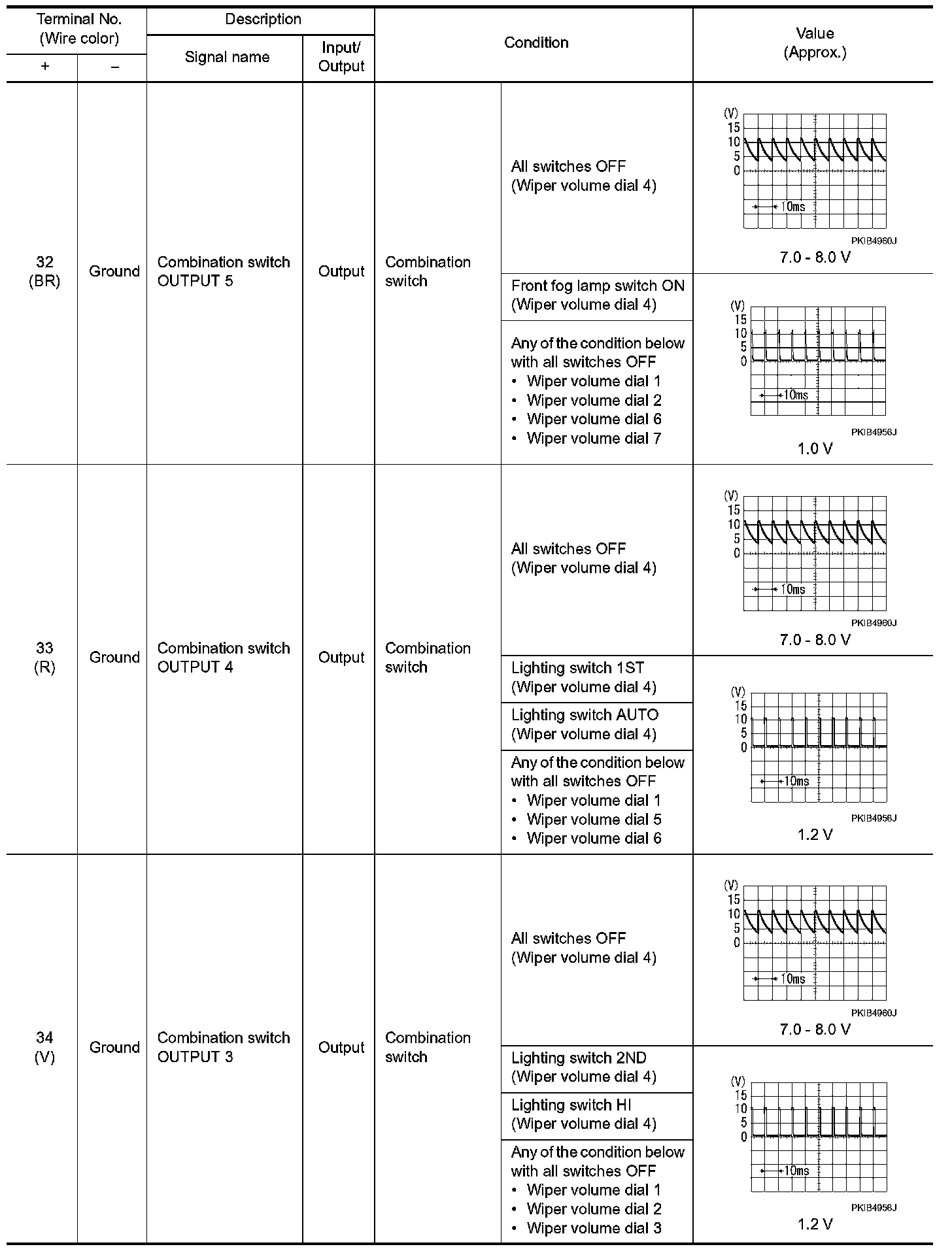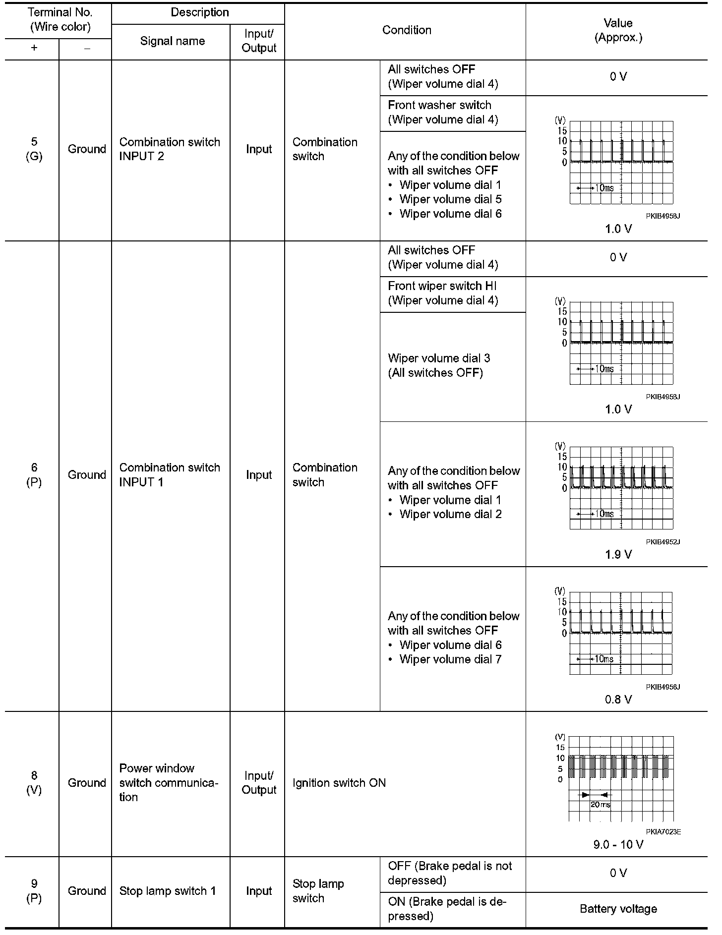 Pinout Values and Diagnostic Parameters