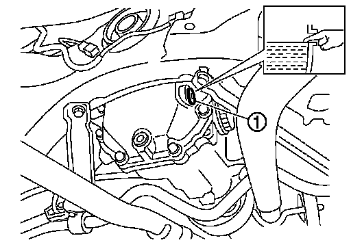 1.Remove filler plug (1). Fill with new gear oil until oil level reaches the specified level near filler plug mounting hole.