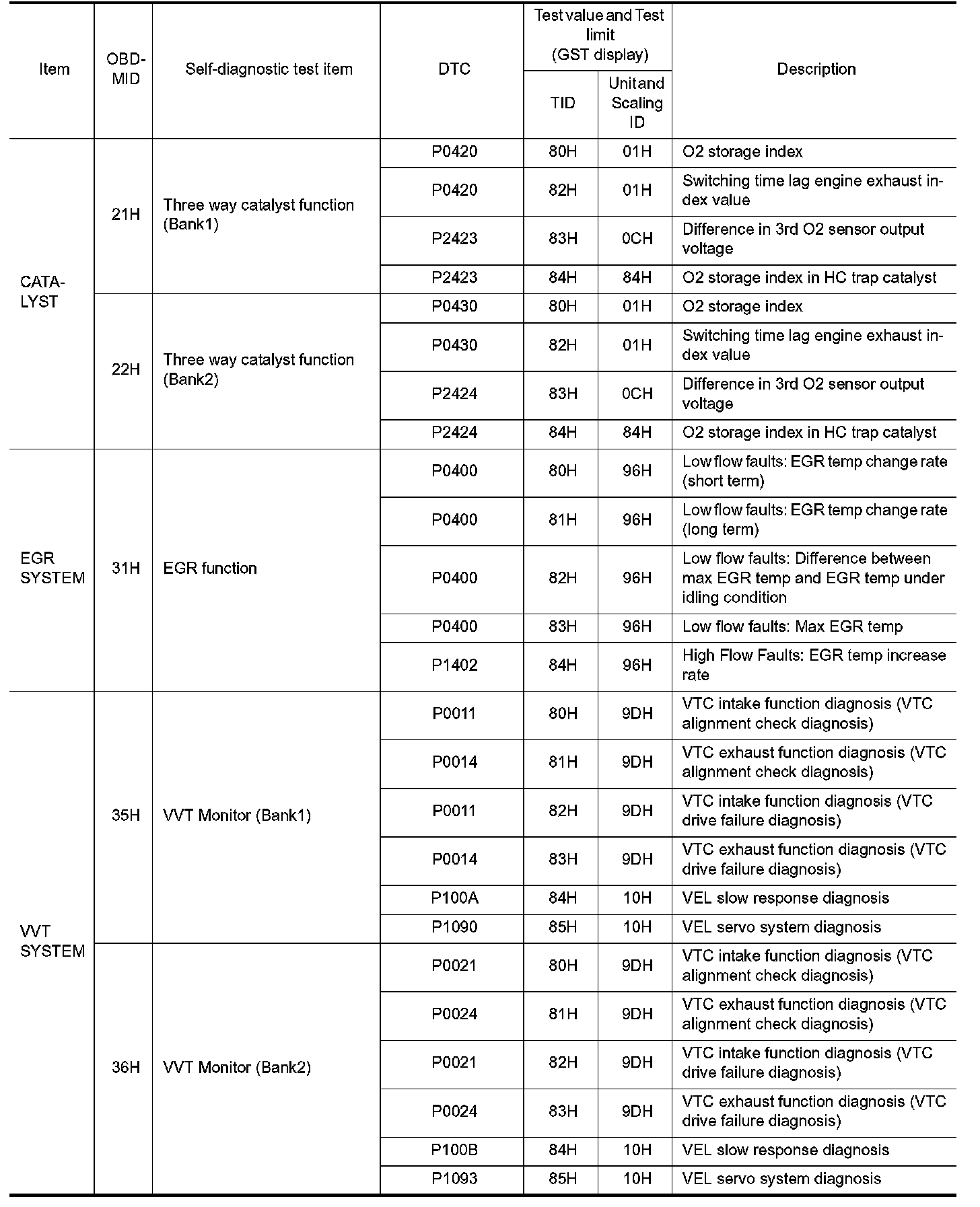 These data (test value and test limit) are specified by On Board Monitor ID (OBDMID), Test ID (TID), Unit and