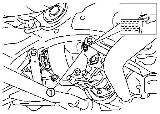 1.Remove filler plug (1). Fill with new gear oil until oil level reaches the specified level near filler plug mounting hole.